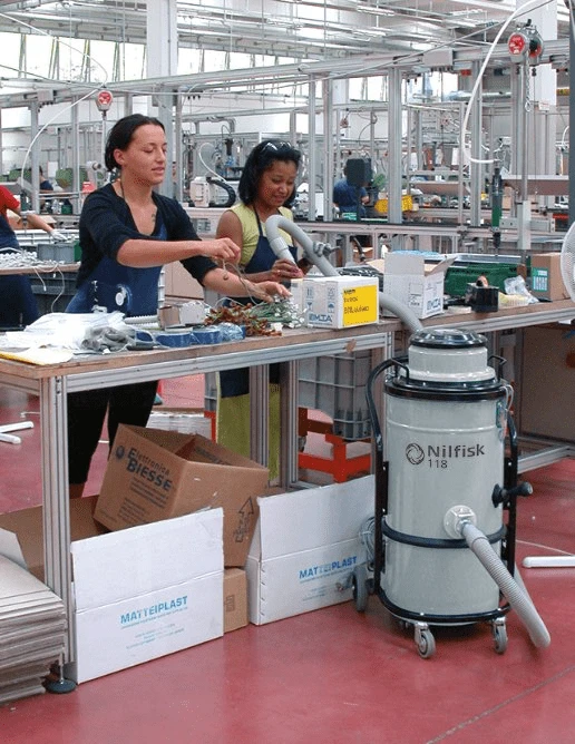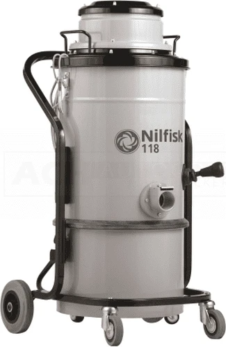Das Modell 118 ist ein kompakter Wechselstrom-Industriesauger mit geringen Abmessungen. Flexibel, ergonomisch, robust, mobil und saugstark. Lieferbar in den Staubklassen L, M und H sowie in verschiedenen Gehäuseausführungen. Sehr bedienerfreundliches Entsorgungssystem. Der Industriesauger 118 ist universell einsetzbar für trockenes Sauggut: von Feinstaub bis zu grobem Schmutz. Sein Herzstück ist die langlebige 1KW-Bypass-Wechselstrom-Turbine. In der Filterkammer arbeitet ein Sternfilter mit großer Filterfäche. Dadurch sind lange Saugintervalle ohne Unterbrechungen möglich. Standardmäßig wird der Sauger mit einem Staubklasse „L“-Filterelement geliefert. Je nach Bedarf ist der Industriesauger in den Varianten in Staubklasse L, M oder H (gem. DIN EN60335-2-69) sowie mit hitzefestem Filter lieferbar. Eine manuelle Filterabreinigungsmechanik zur einfachen Filterabreinigung ist serienmäßig verbaut. Das sehr bedienerfreundliche Entsorgungssystem erlaubt die schnelle und einfache Entnahme des Sauggutes durch einen Behälter mit Absetzsystem. Die Staubklasse H – Sauger können sowohl mit ABS-Behälter als auch mit Sicherheitsfiltersäcken für staubfreie Entsorgung ausgestattet werden. Es stehen zusätzlich zwei Gehäusevarianten in Edelstahl zur Verfügung. Die großen Gummiräder am Fahrwerk des Nilfisk 118 erlauben den sicheren Einsatz auch auf unebenen Flächen. Besonders geeignet für Baustellen, Werkstätten oder bei engen Platzverhältnissen. Für das Modell steht eine große Auswahl an Standard-Zubehör zur Verfügung (Kesselmuffe ? 50mm).