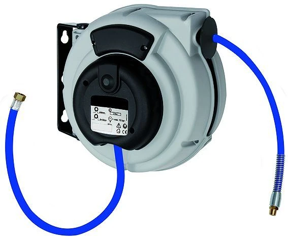 Aufrollautomatik und Federantrieb. Robuste Schlaucharretierung, Gehäuse