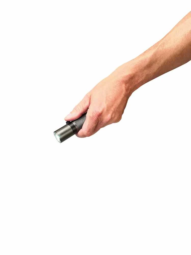 Das Gehäuse ist aus eloxiertem Aluminium für hohe Haltbarkeit und bietet einen ergonomischen und sicheren Griff.