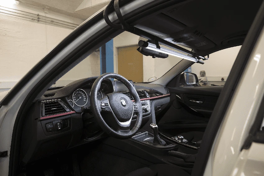 Im Fahrgastraum kann die BONNET LIGHT als Arbeitsleuchte verwendet werden, entweder an der Teleskophalterung oder mit flexiblem Arm und Saugnapf an der Windschutzscheibe montiert.