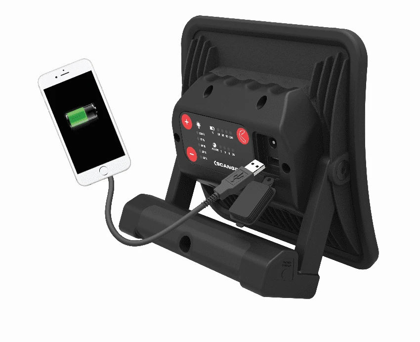 USB Power Bank 1500 Lumen mit 5 Schritt Dimmfunktion. 1 h / 12 h Betriebszeit. 3,7 V / 6000mAh Li-Ion. 4h Ladezeit. IP65. IK07