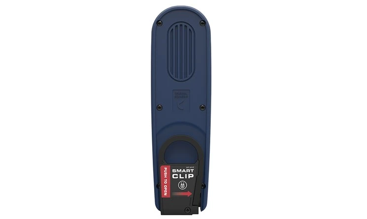 Mit dem SMART CLIP-4-in-1-System bietet die Leuchte mehrere Funktionen in einer Einheit. Der Clip ist für das Tragen am Arbeitsgürtel gedacht, damit die Leuchte für Inspektionsaufgaben immer zur Hand ist. Der kräftige eingebaute Magnet oder der einziehbare Haken ermöglicht flexible Aufstellung der Arbeitsleuchte, wenn beide Hände benötigt wird. Darüber hinaus funktioniert der SMART CLIP als Stütze auf allen vorhandenen Oberflächen.