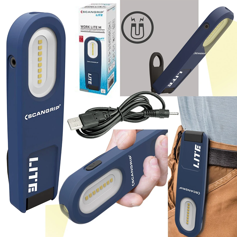 SCANGRIP WORK LITE M Akku LED Arbeitslicht mit Spotlight und Smart-Clip 110/220 Lumen / Spot 75 Lumen 03.5641 03.5641