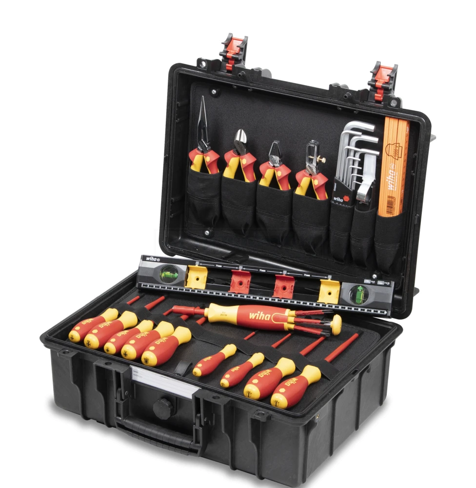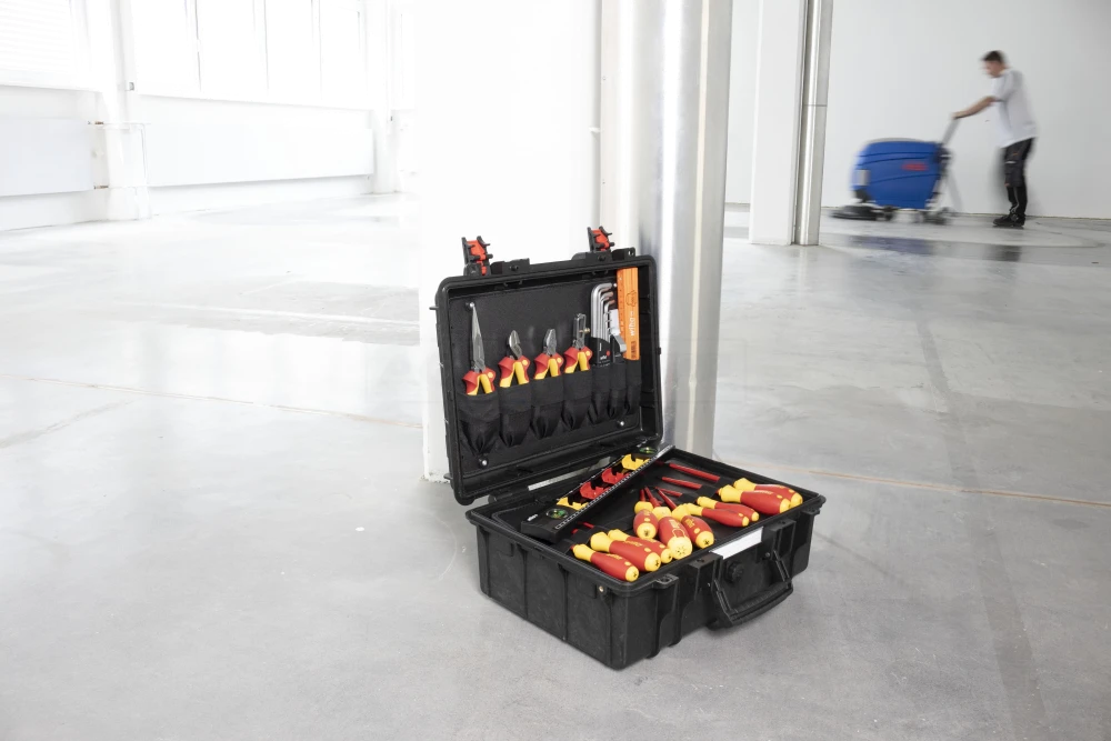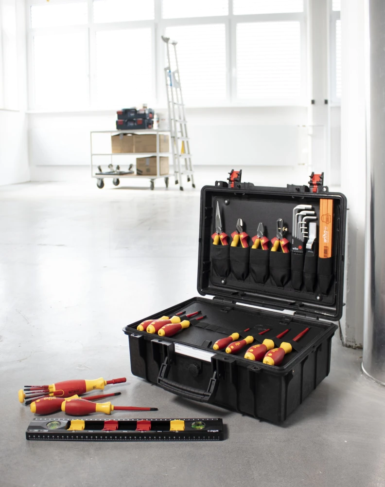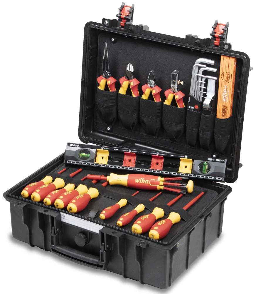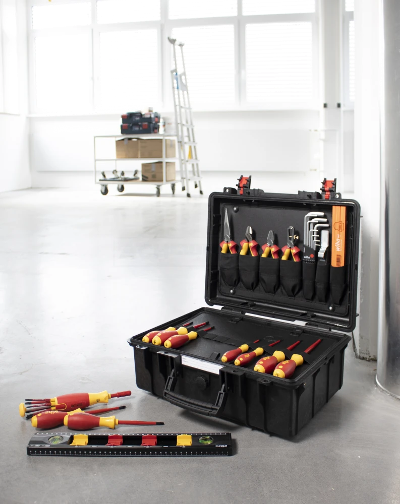 Erfüllt Ihre Ansprüche: Handlicher, robuster Koffer bestückt mit der Basisausstattung an hochwertigen Handwerkzeugen für den mobilen Elektriker.