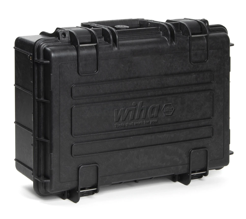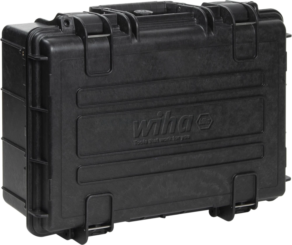 Im mobilen Einsatz ist es nicht leicht alle nötigen Werkzeuge bei sich zu tragen und gleichzeitig Ordnung zu bewahren. Mit dem Werkzeugkoffer Basic hat der mobile Elektriker eine überzeugende Ausstattung und verliert dabei nicht die Übersicht. Für die optimale Grundausstattung ist der handliche Werkzeugkoffer mit einem Sortiment aus hochwertigen Handwerkzeugen bestückt, von denen der Großteil durch Ihre VDE-zertifizierte Isolierung zusätzliche Sicherheit bei Arbeiten an spannungsführenden Teilen bietet. Darüber hinaus bietet der Koffer dank weiterer Schlaufen und zusätzlichem Stauraum reichlich Platz für die weitere, individuelle Zusatzausrüstung. Der aus Polypropylen hergestellte Koffer garantiert Robustheit und kann an den integrierten Ösen mit Vorhängeschlössern gegen Diebstahl gesichert werden (diese sind nicht im Lieferumfang enthalten). Für das angenehme Tragegefühl sorgt der ergonomische Zweikomponentengriff. Auch für Flüge ist der Werkzeugkoffer Basic dank Luftdruckausgleichsventil bestens geeignet und kann mit vorhandenem, selbst beschriftbarem Namensschild eindeutig dem Eigentümer zugeordnet werden. Zertifiziert nach der Schutzklasse IP 67 ist der Werkzeugkoffer von Wiha staub- und wasserdicht. Mit seinen 20 L Fassungsvolumen und einer zulässigen Tragfähigkeit von bis zu 14,2 Kg ist er für verschiedenste Einsatzbedingungen gewappnet.